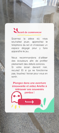 Welcome to Le Chagrin Multicolore, an augmented reality application where you will meet Ariette, an enigmatic ghost in search of her lost memory.