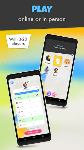 1. Offline mode: Everyone plays on the same phone. Players must be physically together.