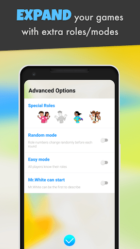 • Time to vote: After discussion, vote to eliminate the person that seems to have a different word from yours. The app will then reveal the eliminated player’s role!