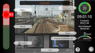 This is a train driving simulation game using video images.