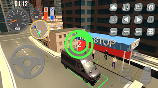 The minibus van game also features a mini GPS system to help you navigate city streets and traffic, so you can keep track of where you are and plot your route on the mini map in the top right corner.