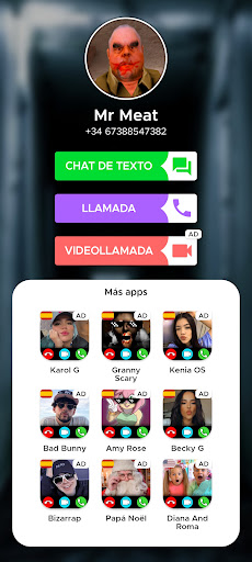¡No son llamadas reales, son sólo una imitación! El propósito de la aplicación solo es hacerte pasar un rato divertido y dejar de estar aburrido, pudiendo gastar una broma a tus amigos o familiares simulando la llamada con Mr Meat.