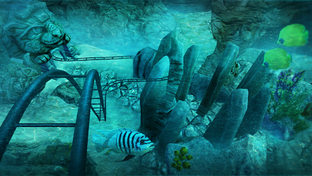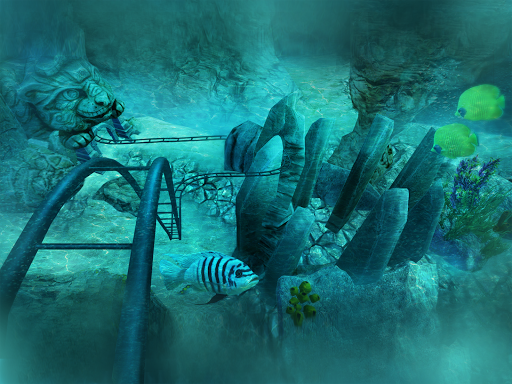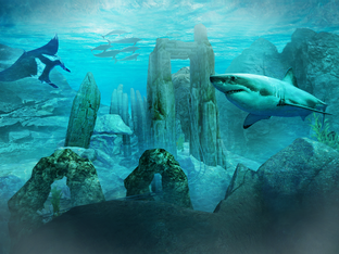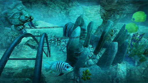 Witness the rollercoaster as it navigates through both fast and slow corners, marveling at the intricate visuals of the ancient concealed temple. Speed by lush greenery and flickering torches as you race at incredibly high speeds! Delight in the vast amount of detail around you... Are these temples of Mayan origin, or perhaps constructed by extraterrestrial beings? With no time to ponder, your expedition will lead you into dark, ominous caves where you'll experience the thrill of gravity and rapid twists and turns through the underworld. Finally, plunge into the depths of the water for a spectacular underwater encounter. Observe the tropical fish in all their animated splendor as they go about their aquatic existence. Just when you assume the virtual reality marine life is all about vibrant coral reefs and colorful fish, a menacing shark will make its presence known on your coaster path, a formidable predator patrolling the open sea.