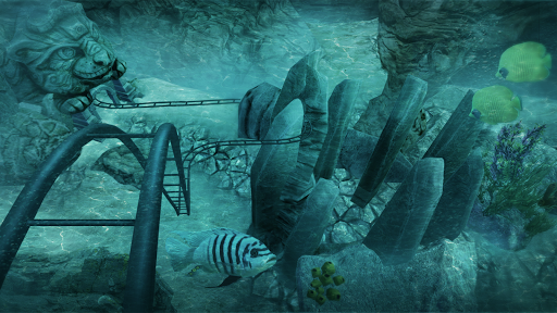 Immerse yourself in a thrilling VR rollercoaster journey through ancient temples, caves, and underwater encounters with exotic sea life and sharks.