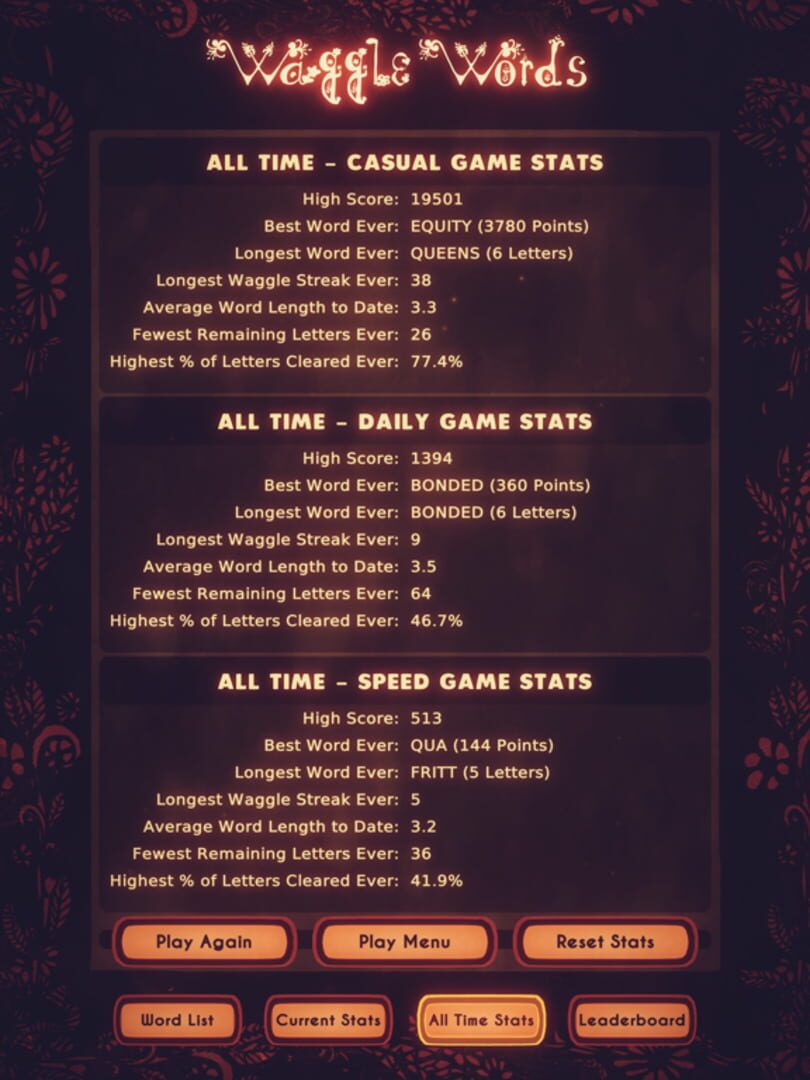 Eager to compare your skills with other players? Game Center's leaderboards are the place for you to gauge your abilities against those of other players. As a cherry on top, iCloud enables you to share your personal statistics across your devices, making sure you don't miss out on the excitement of Waggle Words wherever you go.