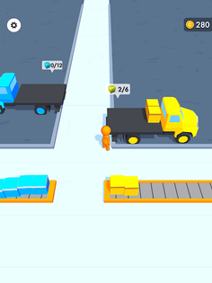 Welcome to "Warehouse," a strategic puzzle game where you must load cargo onto the right colored trucks.