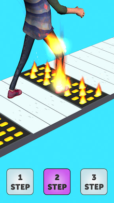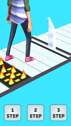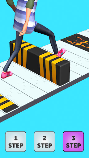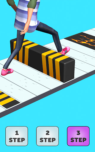 Guide your character with one, two or three steps to avoid stepping on obstacles and reach the exit line.