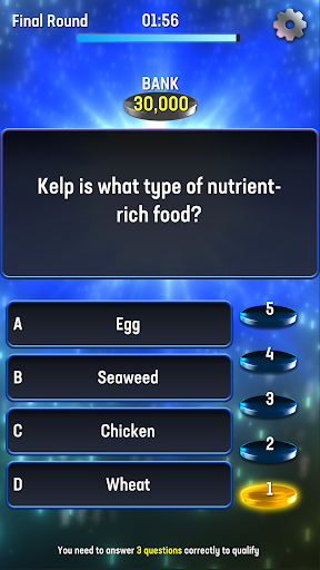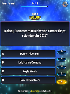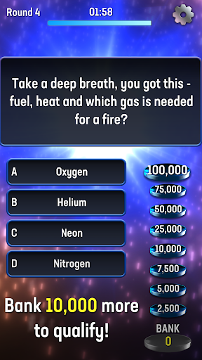 Face trivia questions against the clock across 6 rounds just like the show. Each question moves you up the cash ladder to a bigger amount. Bank your money strategically to hit a qualification target in each round. Get a quiz question wrong before you bank and you lose all the money you’ve built up so far.