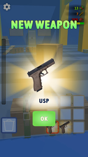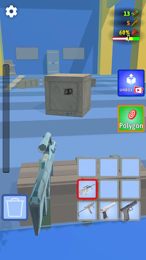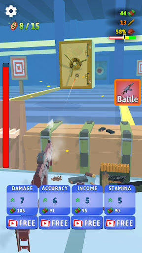 Improve your shooting skills from a variety of weapons on the range. Shoot at the targets. Sometimes among them come across especially valuable. Earn money and spend it on upgrading your skills or on new guns.