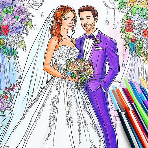 🌸 Take pictures of bridal coloring pages, use them as a wallpaper and show your friends