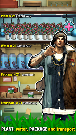Make the first step to start your weedfirm. It's very simple and basic game play, easy as to smoke strains. Correct allocate your fund and make money like a real narcos. Plant, grow, and deal your product. Choose best leafly tea seed. Just tap your base and earn more income. Use indica or hybrid growing grass. Balance bud roots or replanted hemp pot. Smok party need cash and money. Back to fallout college shelter and be the boss of the hempire war. Drug shop empire is grow. Level up and reach a higher target. Protect your realm from gangster!