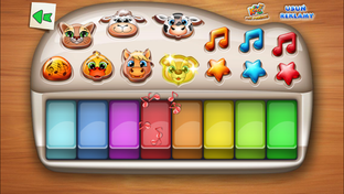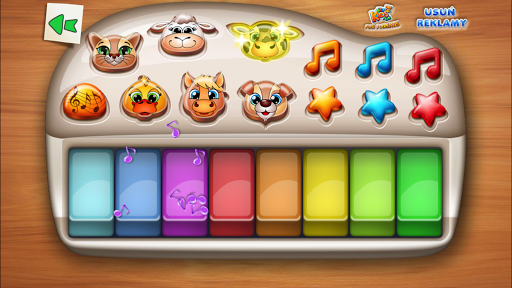 W aplikacji dodaliśmy trzy tradycyjne utwory: "Stary Donald", "Jadą, jadą misie", "Stary niedźwiedź" - które możesz posłuchać lub podpatrzeć na podpowiedzi i zagrać je samemu.