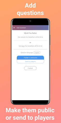 It is simple trivia word casual game where you need to choose would you rather pick scenario 1 or scenario 2, like truth or dare, or never have I ever, and many other fun party games.