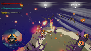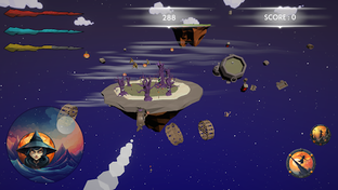 Control your character with precision and flair, navigating a treacherous sky filled with floating platforms and menacing foes. As you ascend, cast devastating spells and launch fireballs to obliterate your enemies. Each platform holds the key to survival, offering health to mend wounds, mana to fuel your sorcery, and the precious fuel to keep your broom soaring through the night.