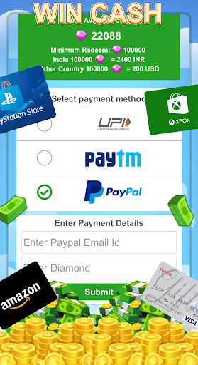 The more you play, the more you earn. You can get free Paypal cash, Paytm Cash, Amazon Pay Cash, Flipkart Gift cards and Google Play Gift cards, Spotify membership, Netflix subscription, Amazon Gift cards and more! 🤑