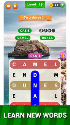 A big word search game with levels, hundreds of puzzles and different categories to play.