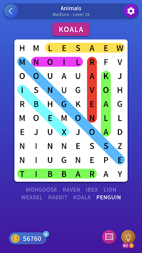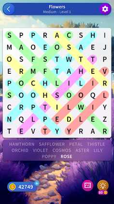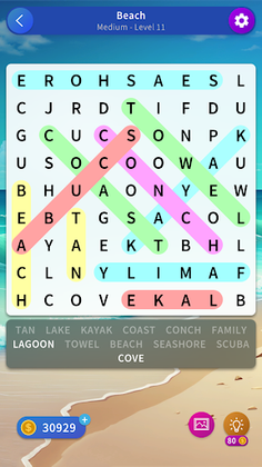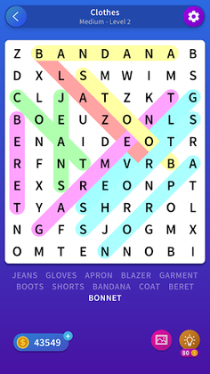 Find hidden words & receive rewards after completing a puzzle.