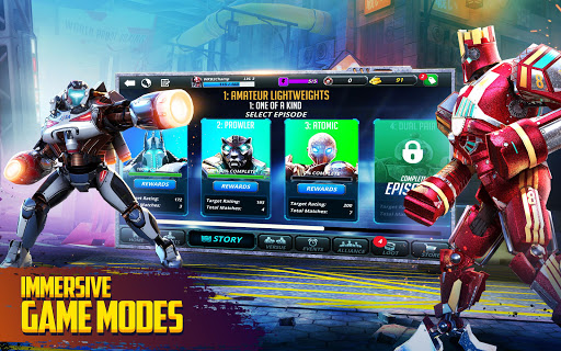 To become a champion, you must start from the bottom. From hidden underground fights to climbing the ladder and eventually becoming the World Champion, this game combines storytelling with thrilling action. Create a team of steel warriors and compete in gritty mech battles. Customize your robots with unique abilities, practice and train to hone your skills, and knock out your opponents with awesome signature moves. Climb the leaderboards to compete for the World Robot Boxing Championship Title.