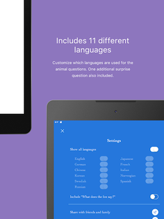 Customize which languages are used for the animal questions. Choose from: