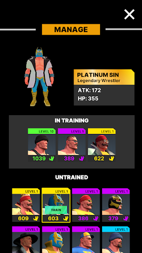 Your team can be made up of a wide variety of wrestlers. From common wrestlers to legendary titans, every fighter brings something different to the table. With enough training, your wrestlers can reach new heights and dominate the wrestling world.