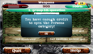 Dates, events, persons and a picture illustrated weapons categories are available.