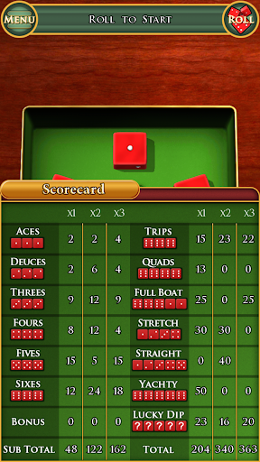 In each round, you roll the dice and score the result in one of 13 categories.You must score exactly once in each category, so skill and judgment are required as the game progresses and your options start to run out. The aim of the game is to make the biggest score you can from the 13 rounds.