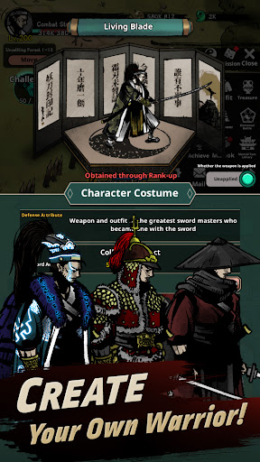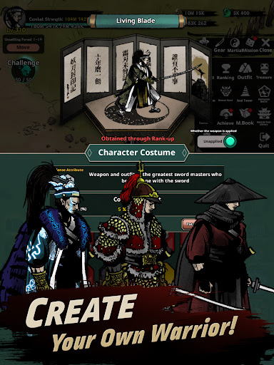 - Develop your own swordsman through various martial arts skills and equipment combinations