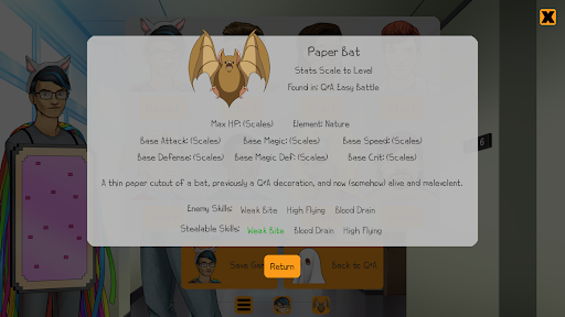 Fight paper bats and the manifestation of you and the rest of the crew's literal fears to put an end to this nonsense— maybe the real party was all the friends we made along the way.
