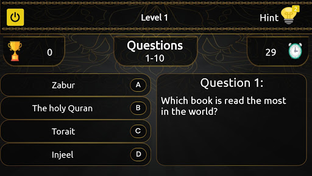 This educational game app allows you to complete the levels by answering. It has 10 levels and each level contains Islamic general knowledge.