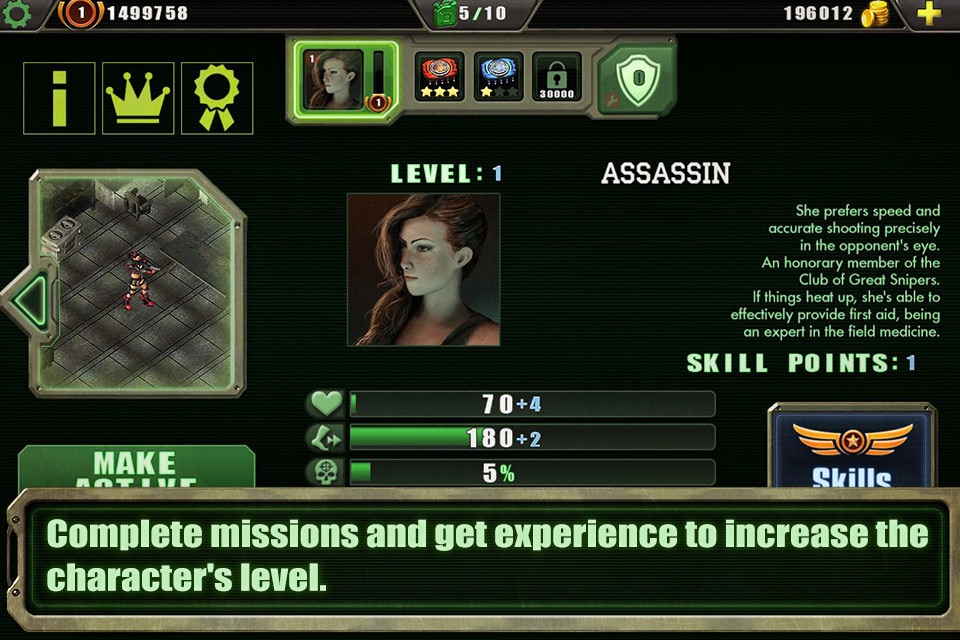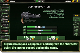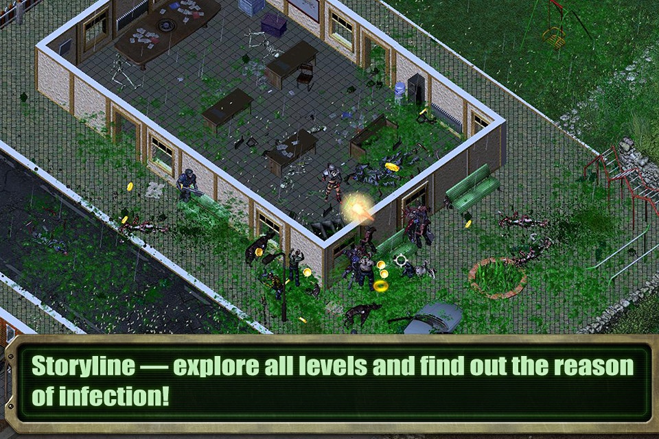 Upgrade your guns and gear to become the ultimate zombie killing machine. Earn money by killing zombies and spend it on purchasing new weapons and upgrading your gear. You can also choose from a variety of boosters and other gear including nanobots, armor, implants, medical kits, and grenades, to help make the mission easier.