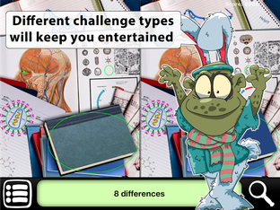 - diverse locations to find the hidden items, find pairs, find differences, and solve puzzles;