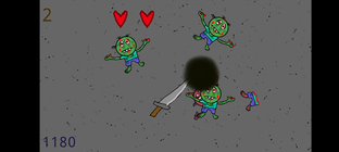 Zombies pop up and you need to cut them, also there are bombs that pop up .and you shouldn't cut them because they will explode