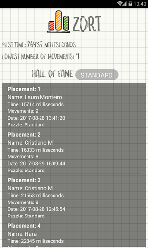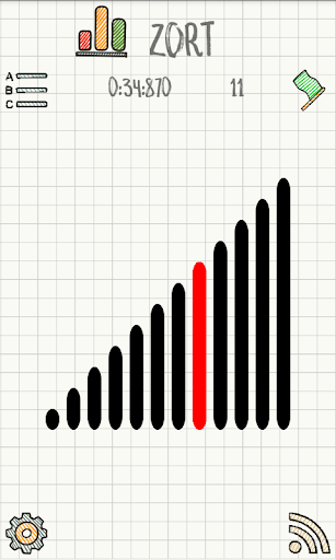 Zort is a fast paced, plan ahead, milliseconds timed puzzle. The objective is to put back, in ascending size sequence, a series of 12 bars. Press the green flag button, the bars will be shuffled and timer starts. Click any two bars and they will swap place. Attention: Red bars are frozen, can't be clicked or swapped. Every movement a new bar is selected to be frozen.