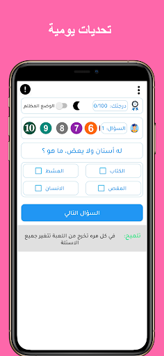 تطبيق لعبة الاسئلة - سؤال وجواب يحتوي على العديد من المجالات المتنوعة وكل مجال معرفي يحتوي على عدة مستويات منها اسئلة وأجوبة سهلة وأخرى أسئلة وأجوبة صعبة ومعلومات عامة بإضافة الى أن كل مستوى يحتوي على 20 سؤالاً. ولكل سؤال يوجد اربع إختيارات, واحدة منها فقط صحيحة. ولتطوير ثقافتك العامة فهو يصحح لك الاجابة قبل المرور الى السؤال الموالي.