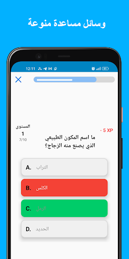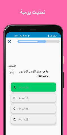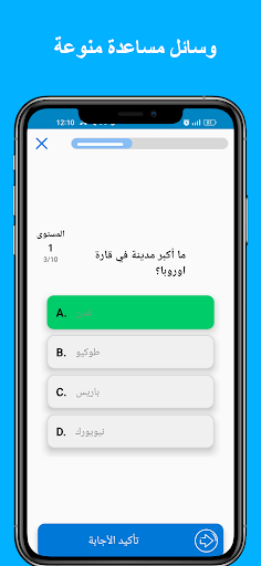 ولكل سؤال يوجد اربع إختيارات, واحدة منها فقط صحيحة. ولتطوير ثقافتك العامة فهو يصحح لك الاجابة قبل المرور الى السؤال التالي.