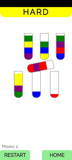• القاعدة هي أنه لا يمكنك تحريك الماء فوق ماء آخر إلا إذا كان لكلاهما نفس اللون وكان الأنبوب الذي تريد الانتقال إليه به مساحة كافية. وإلا يتم رفض الماء يتم الفوز بعد تصفيه كل الالوان حسب ترتيبها