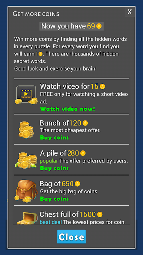 But wait, there's more! Each puzzle in this game hides many additional words, and it's up to you to find them all. Some puzzles have even dozens or hundreds of hidden words! Once you solve the puzzle, you can replay it all over again to search for the hidden words you may have missed.