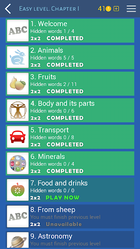 Step into an exciting puzzle adventure with the 1000 Words game! This game challenges you to uncover one or more words in every puzzle. All you need to do is swipe your finger in a horizontal, vertical, or diagonal direction to connect letters and form words. You can discover words in various categories such as animals, sports, countries, and food, just to name a few. If you get stuck, do not fret, as hints will be available to reveal the first letters of each word.