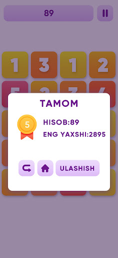 - Agar siz raqamga raqamni to'g'ri qo'shsangiz, o’yinni cheksiz vaqt o'ynashingiz mumkin.