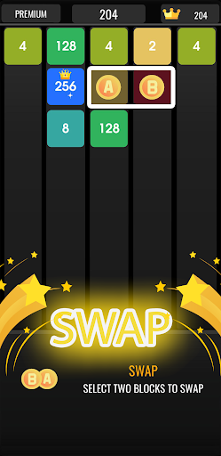 Swap Power-Up: "Instantly switch two tiles to strategize and achieve new merging possibilities in the 2048 puzzle game!"