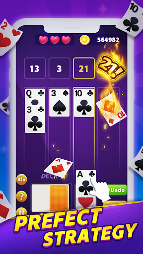 Blackjack meets Solitaire; a perfect challenge for aspiring card counters.
