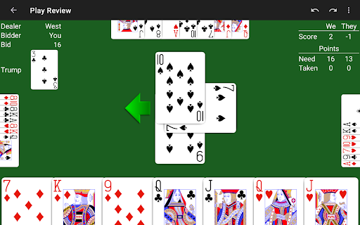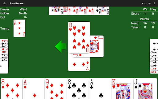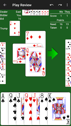 • Review the play of the hand trick by trick at the end of the hand.
