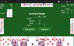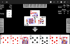 Twenty-Nine (29) is also known as Twenty-Eight (28). With NeuralPlay Twenty-Nine, you can play to a score of either 29 or 28 by choosing to award a point for the last trick or not.