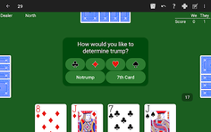 • 7th card. Make the 7th card dealt to the declarer determine the trump suit. This card is visible to the declarer when dealt, but will not be revealed to other players until the trump suit is revealed during play.