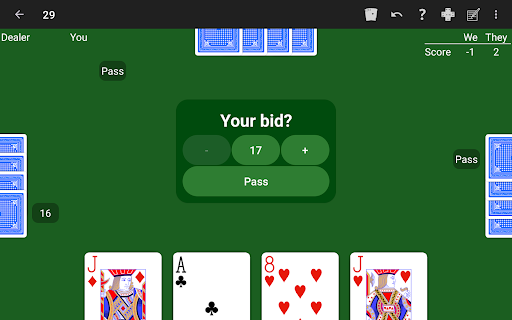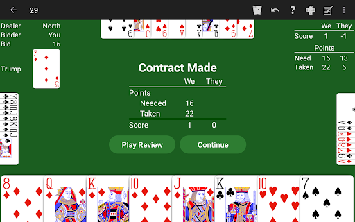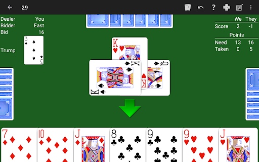Play with the Twenty-Nine rules you like! NeuralPlay's Twenty-Nine offers many rule options for you to customize the game to your liking.