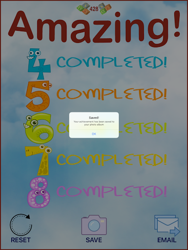 If you achieve all levels you receive a certificate you can save to your photo library and/or email your success. Good luck!