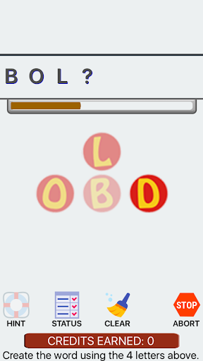 You get credits for any match you make and you use these credits to get hints. If you fail to guess a word or you hit "STOP" it costs you a credit. If you are advancing in the levels you can always select 4 letter words to build up your credits.
