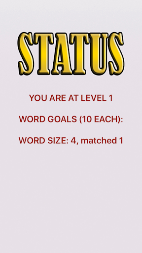 Each time you get guess 10 words the device has chosen you advance to the next level. Every time you advance to a new level your word count is cleared and you must guess 10 words for each level. For example, if you just advanced to level 3 then your new goal is to get 10 words of 4, 5, and 6 word lengths each.