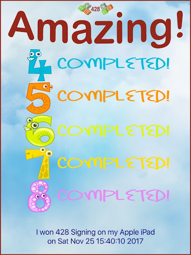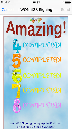If you achieve all levels you receive a certificate you can save to your photo library and/or email your success.