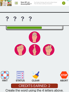 You get credits for any match you make and you use these credits to get hints. If you fail to guess a word or you hit "STOP" it costs you a credit. If you are advancing in the levels you can always select 4 letter words to build up your credits.